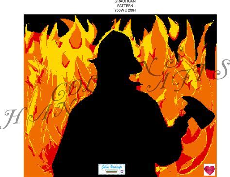 SC Pattern Graphgan-Firefighter In Flames (3096) Fire,Silhouette,Graphgan,Blanket,Crochet,Afghan,Graph