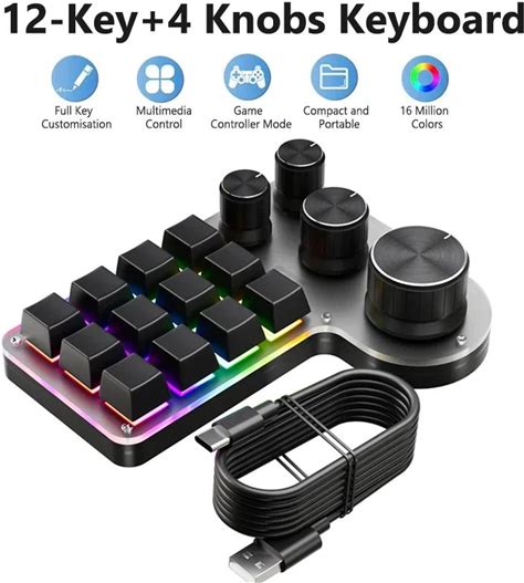 Ammtoo Programming Macro Custom Keyboard 12 Key 3 Knobs RGB 18 Character One Key Password Copy Paste