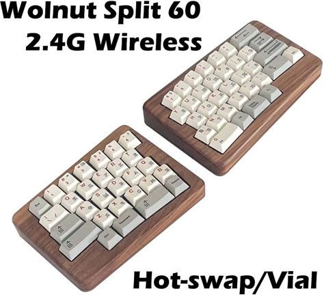 Wooden Walnut Split Ergonomics Hot-Swap MX Mechanical Keyboard 2.4G Wireless VIAL Fully Programmable